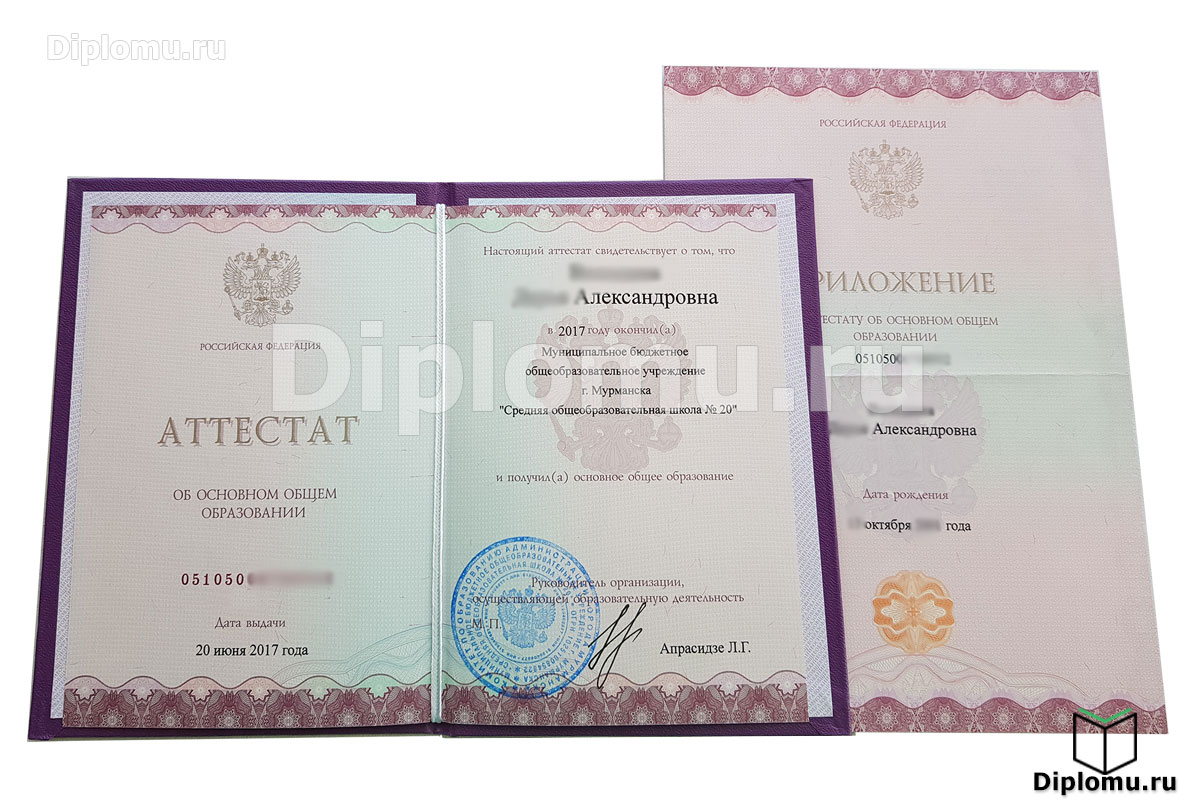 - Комплект: Аттестат + твёрдая обложка + приложение