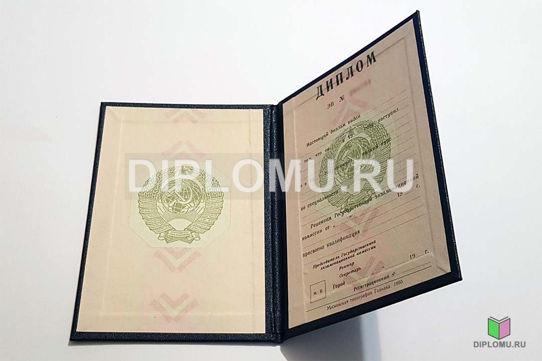 На нашем сайте Вы можете купить диплом ВУЗа СССР о высшем образовании с окончанием института или университета в период с 70-x годов и до 1996 года включительно. До 1991-1993 годов старые дипломы заверялись гербовой печатью СССР (РСФСР), а позднее — печатью РФ с двуглавым орлом. Наши специалисты заполнят диплом по всем правилам, установленным на тот период. Заверяются «мокрыми» печатями и нужными подписями.